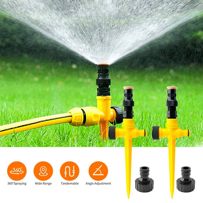 Öntözze egyenletesen a kertet, virágokat, gyepet és más növényeket! Mitől olyan különleges ez az öntözőberendezés Mert 2 kerti tömlőcsatlakozóval és tandem öntözéssel rendelkezik, és a forgatható szórófej 90°, 180° vagy 360°-os vízpermetezéshez állítható!