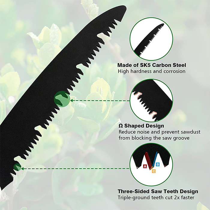 • Éles kézi fűrész minden típusú cserjékhez és kerti fákhoz