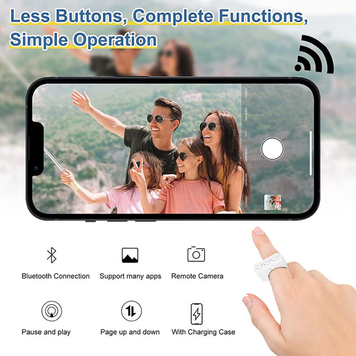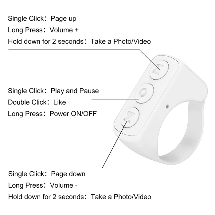 Csatlakoztasd okos eszközödhöz Bluetooth-on keresztül. A távirányító akár 10 méterről is működik. Töltsd fel a tárolódobozt, amely Type-C bemenettel rendelkezik, a kábellel. A kábel egyik végén Type-C töltő, a másikon klasszikus USB található. A töltési idő körülbelül 1,5 óra. Miután a doboz feltöltődött, a távirányítót a dobozban magában is töltheted. Az akkumulátorcsomag 8 órás üzemidővel rendelkezik. Egy teljesen feltöltött dobozban a távirányítót 5-ször töltheted fel. A dobozban a távirányító körülbelül 1 órát töltődik. A távirányító alkalmas iOS és Android rendszerekhez. |