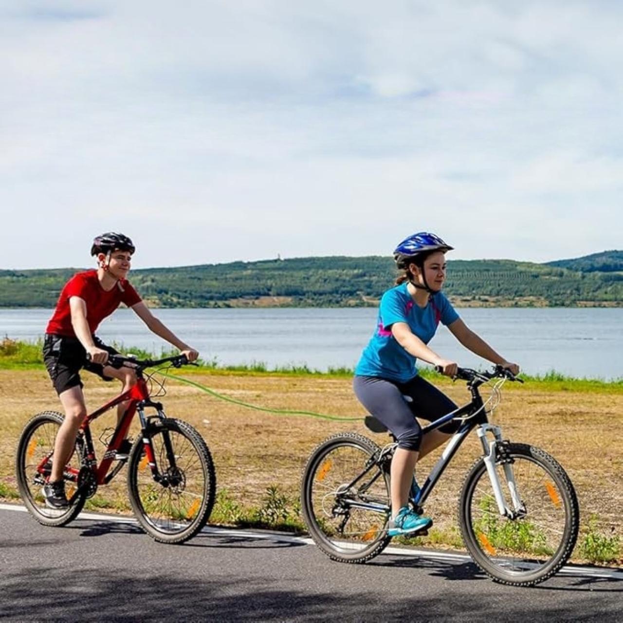 Alkalmas arra, hogy szülő húzza a gyerek (vagy más) kerékpárját kerékpározás közben. Az elasztikus kerékpár vontató kötél (2,5 m) használata előtt készítse elő mindkét kerékpárt, és ellenőrizze azok működését. Rögzítse a kötél egyik végét a szülő kerékpár ülés alá, a másik végét pedig a gyerek kerékpár kormányára vagy a váz fejére. A kötél legyen enyhén feszes, de ne túl szoros, hogy természetes mozgás legyen, rázkódás nélkül. Győződjön meg róla, hogy a kötél nem ér hozzá a lánchoz vagy a kerekekhez kerékpározás közben. A szülő egyenletes tempóban haladjon, a gyerek pedig mindenkor fogja a kormányt mindkét kézzel, és kövesse. A kerékpározás után távolítsa el a kötél, szárítsa meg és száraz helyen tárolja. Ne használja a kötél, ha lefelé vagy gyorsan halad, mindig viseljen sisakot és védőfelszerelést, csak felnőtt használhatja a kötél, és ellenőrizze sérülésmentességét használat előtt. A terméket csak felnőtt felügyelete mellett szabad használni. Mindig ellenőrizze a helyes rögzítést használat előtt. |